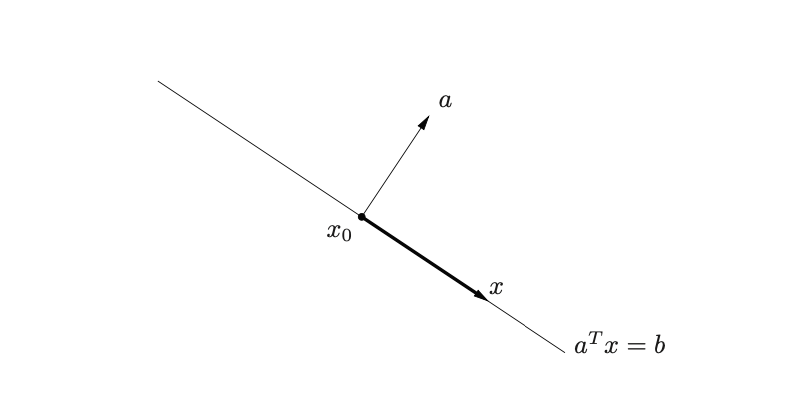 $$ \left\{ x \; | \; a^T\left( x-x_0 \right) = 0 \right\} \quad \text{where} \quad a^T x_0 = b $$