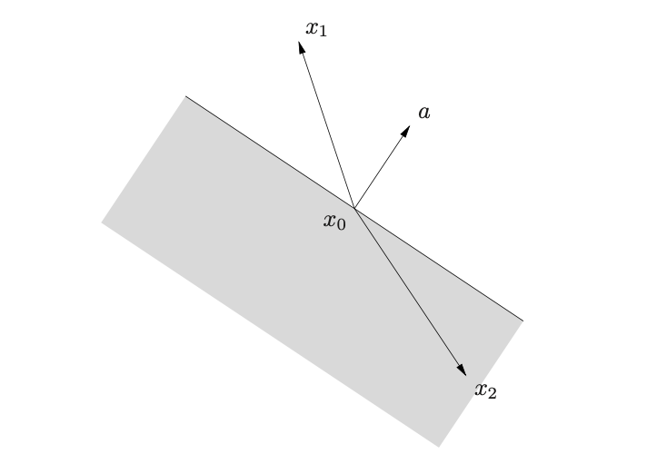 $$ \left\{ x \; | \; a^T \left( x-x_0 \right) \leq 0 \right\} $$